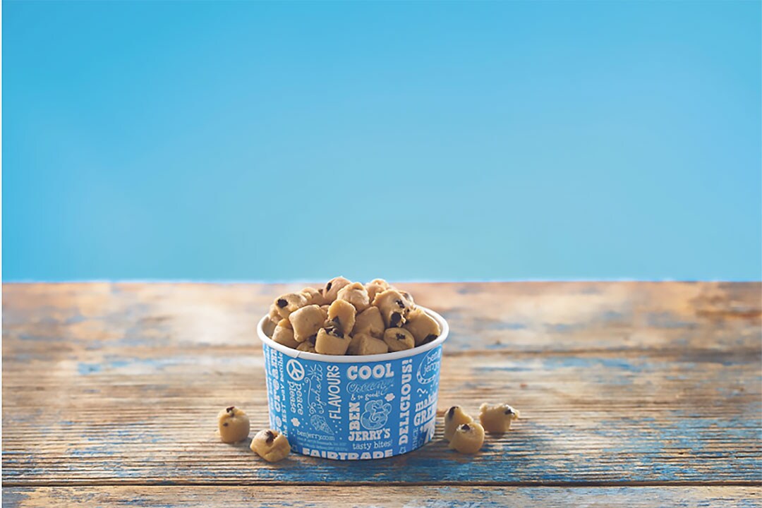 Producto de base vegetal helado de caramelo con remolinos de galleta (6,5%), masa de galleta al cacao (8,5%) y trocitos chocolateados (5%).