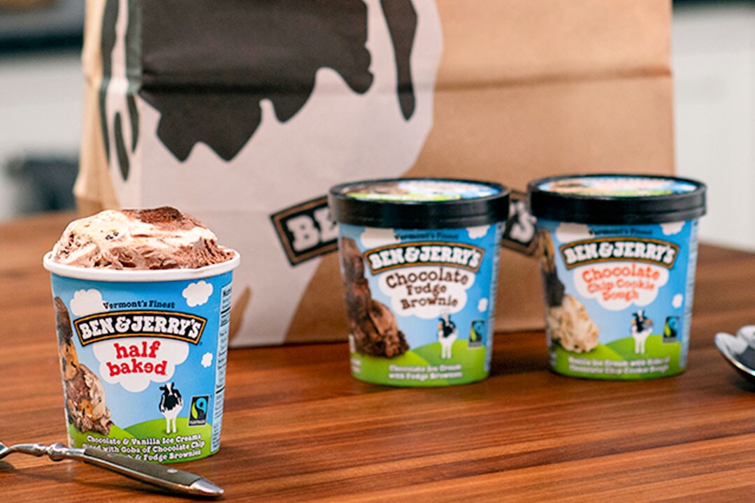 Helado crema sabor caramelo con remolinos de caramelo a la sal y brownies.