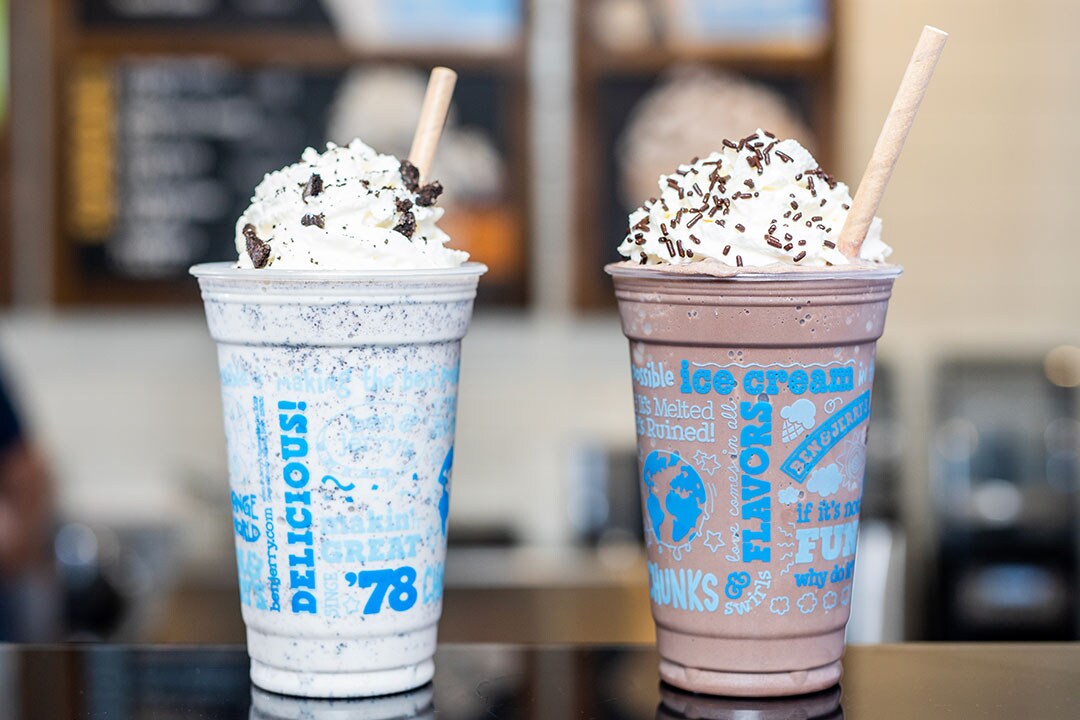 Helado de crema de cacahuete con remolinos de pretzels dulces & salados y trocitos de brownies